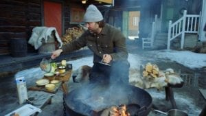 - Ekstedt lager mat i gårdsrommet hos kunstner Per Sverre Dahl. Foto: Tv2 Sumo